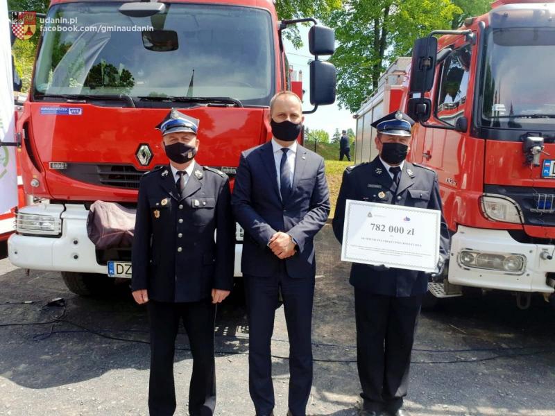 Prezes OSP Lusina odebrał promesę na zakup nowego wozu strażackiego fot.: Gmina Udanin/FB