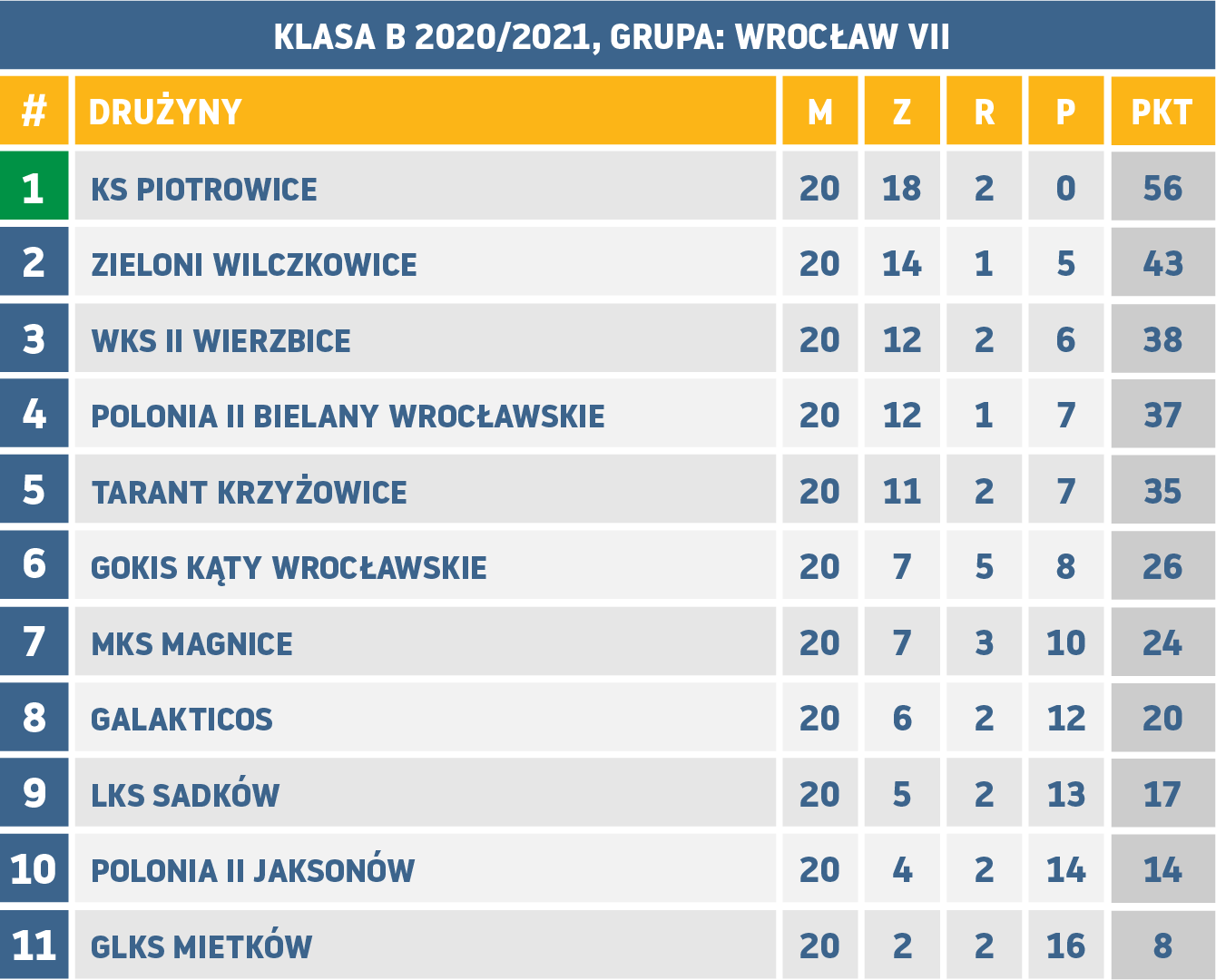 Choć awans do A klasy piłkarze KS Piotrowice zapewnili sobie na trzy kolejki przed końcem, udało się im zanotować sezon bez porażki. W ostatnim meczu sezonu podopieczni trenera Pawła Madalińskiego rozjechali na wyjeździe rezerwy Polonii Jaksonów aż 10:1, tym samym kończąc sezon bilansem 18 wygranych i 2 remisów. Teraz przed zespołem z gminy Kostomłoty czas na przygotowanie do gry szczebel wyżej.