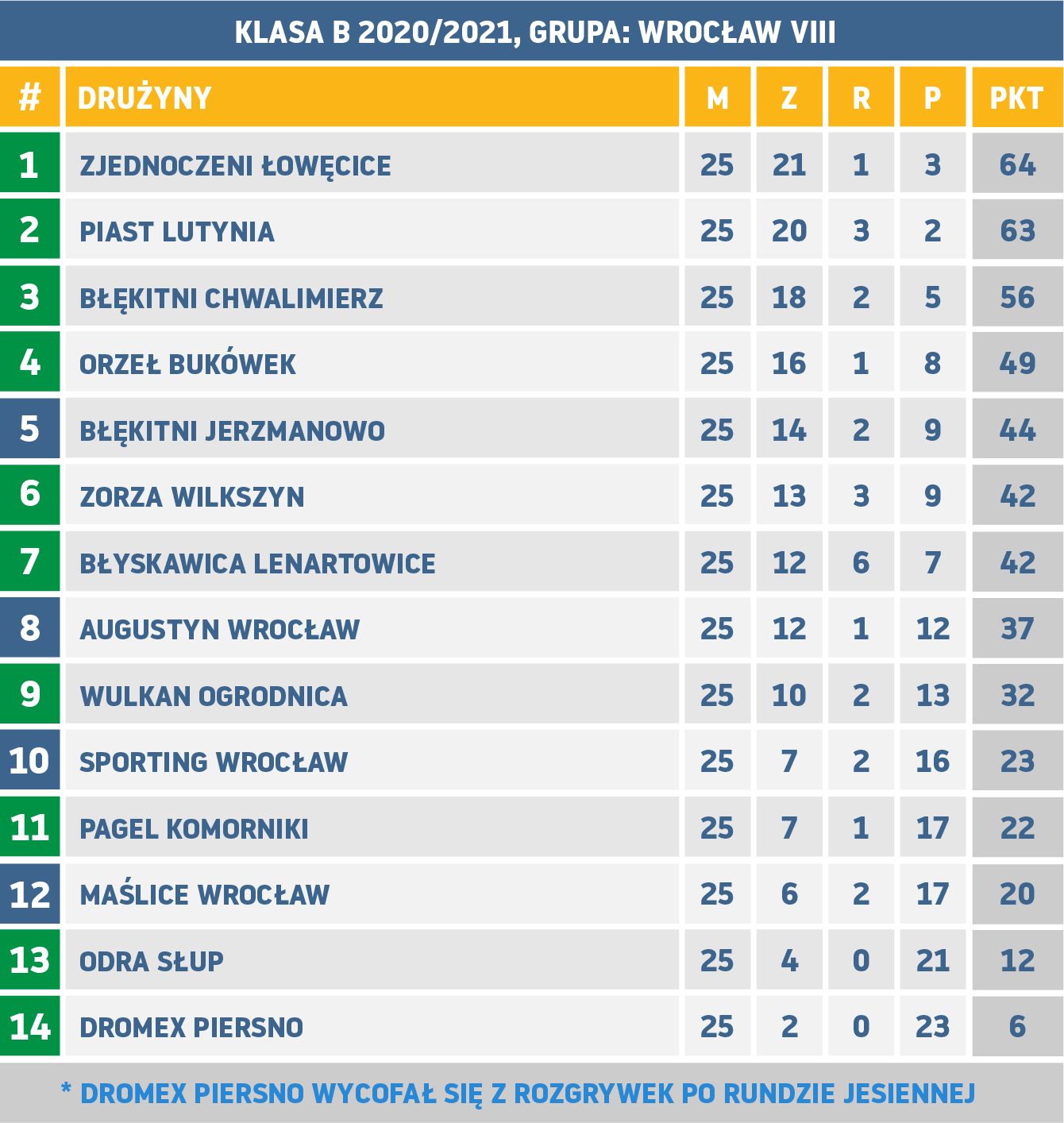 Wyniki 22. kolejki B klasy gr. Wrocław VII