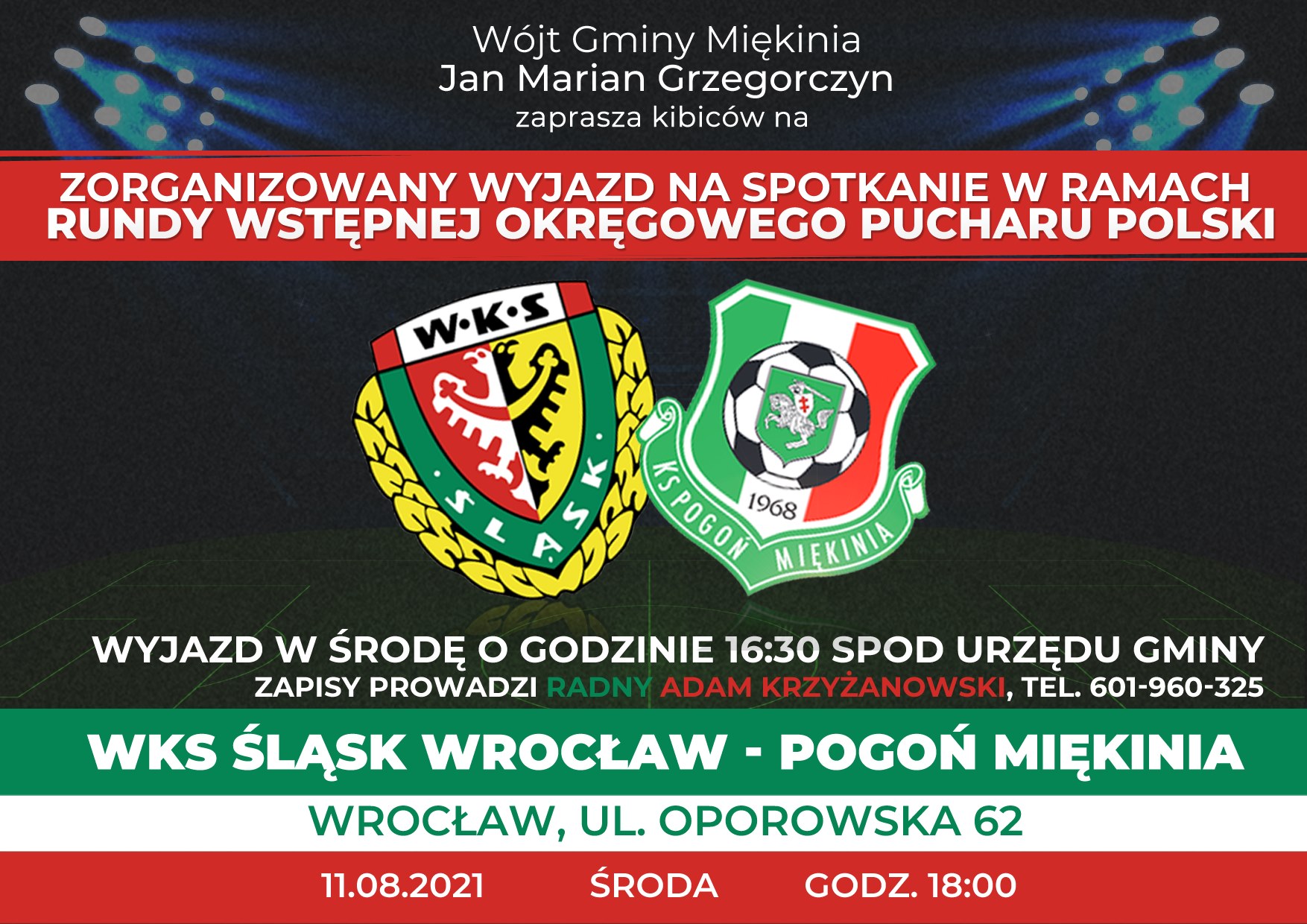 W środę rozpoczyna się runda wstępna okręgowego Pucharu Polski. Z okazji meczu Pogoni Miękinia zorganizowano wyjazd na spotkanie przy Oporowskiej we Wrocławiu.