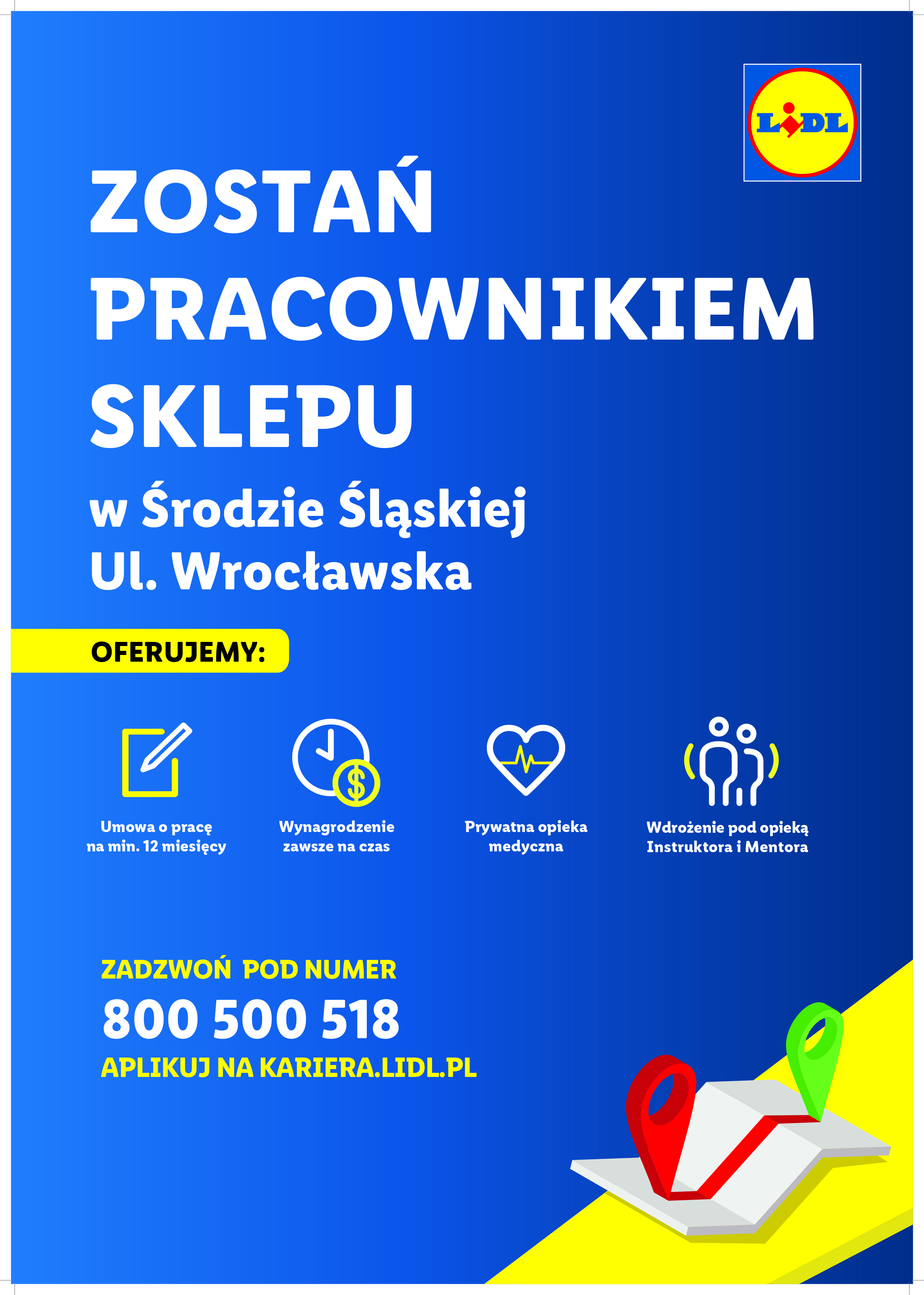 Lidl w Środzie Śląskiej poszukuje pracowników - oferuje m.in. umowę o pracę bez okresu próbnego, atrakcyjne zarobki i prywatną opiekę medyczną.