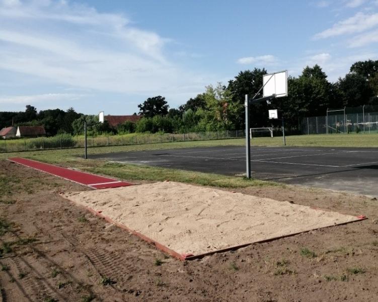 Na terenie zielonym za Szkołą Podstawową w Szczepanowie zakończyła się budowa skoczni w dal.