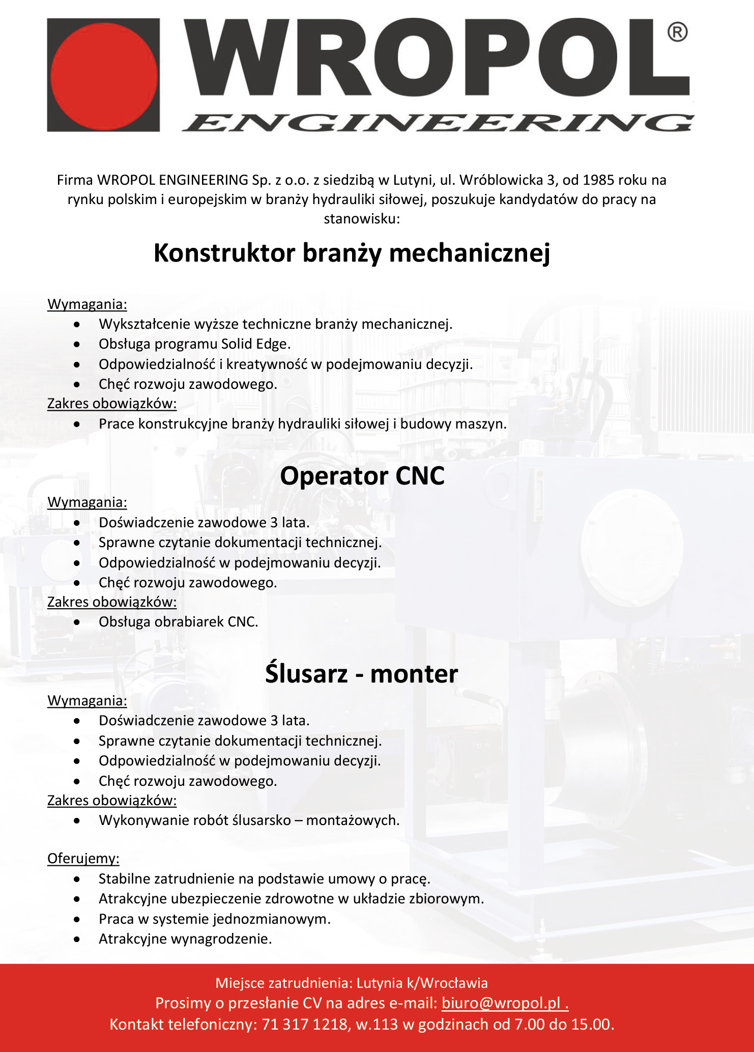 strona główna wiadomości Praca w Wropol Engineering w Lutyni