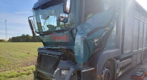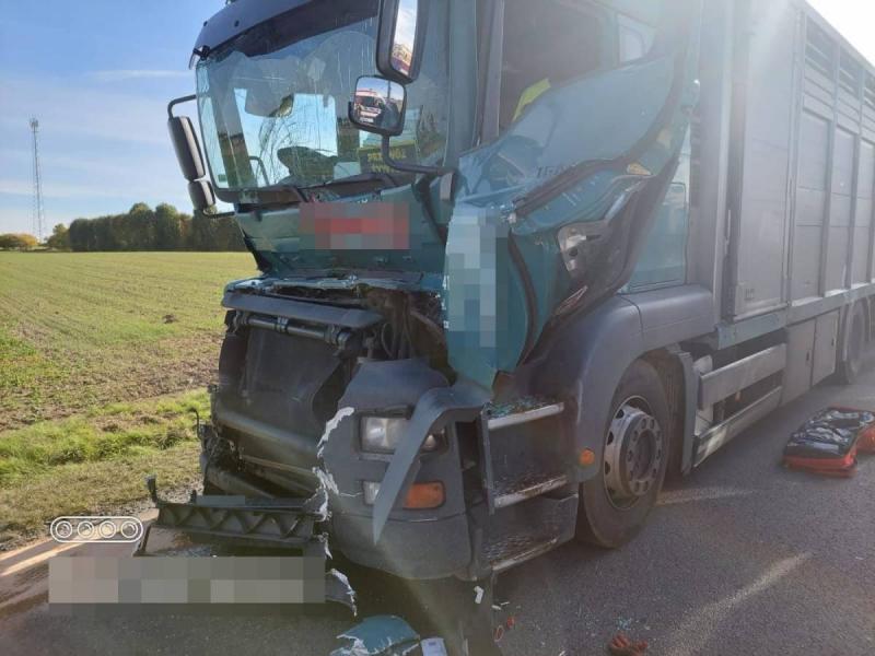 Na drodze krajowej nr 5 na wysokości miejscowości Wichrów doszło do zdarzenia z udziałem dwóch pojazdów ciężarowych. W jednym z nich przewożone było bydło. Lądował helikopter LPR.