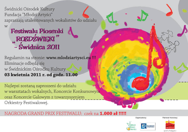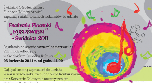 Świdnicki Ośrodek Kultury, Europejska Fundacja Wspierania Talentów Dzieci I Młodzieży „Młodzi Artyści” zapraszają do udziału w Festiwalu Piosenki „Rozdźwięki” – ŚWIDNICA 2011
