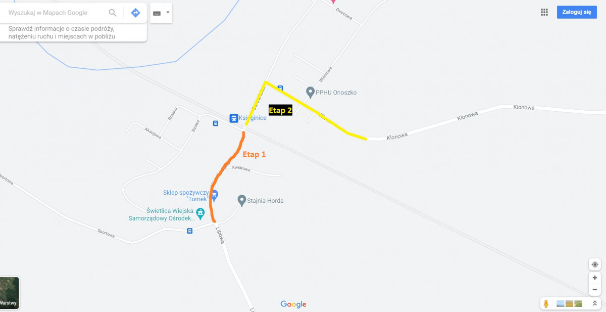 Etap 2 – zamknięcie ul. Odrzańskiej i ul. Klonowej z możliwością wyjazdu z m. Warzyna w kierunku Lenartowic lub w kierunku Białkowa w dniach 08-09.11.2021 r.