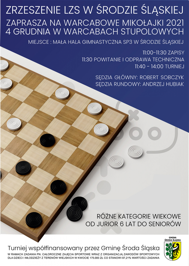 4 grudnia w małej hali gimnastycznej Szkoły Podstawowej nr 3 w Środzie Śląskiej odbędą się Warcabowe Mikołajki 2021 w warcabach stupolowych.
