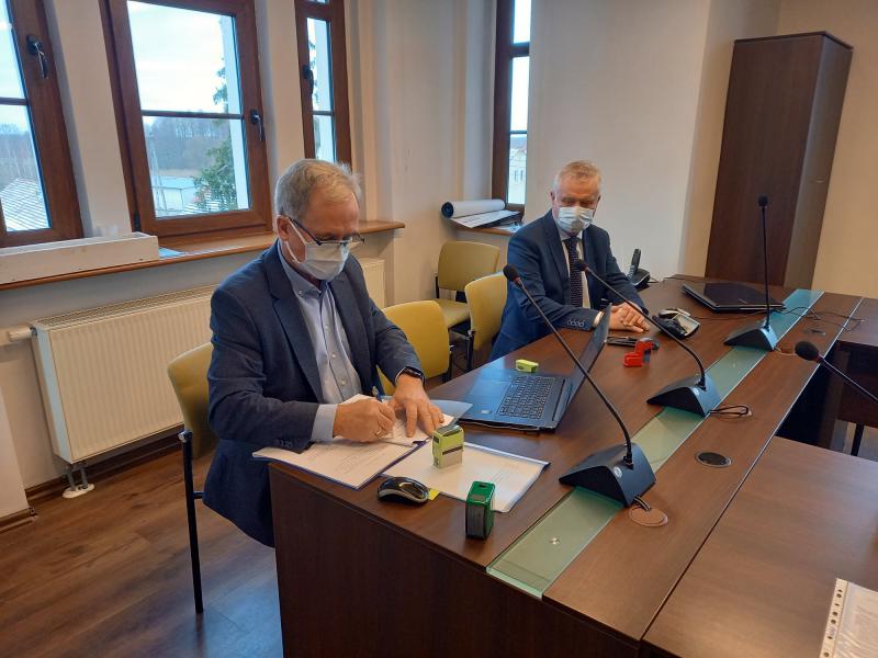 22 grudnia 2021 r. w Urzędzie Gminy Miękinia miało miejsce podpisanie aktu umowy pomiędzy Zakładem Usług Komunalnych w Miękini a wybranym w ramach postępowania o udzielenie zamówienia wykonawcą budowy stacji uzdatniania wody w miejscowości Kadłub