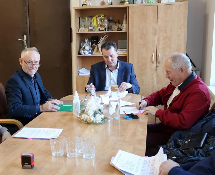 Dzisiaj w gabinecie starosty podpisano umowę z wykonawcą remontu dogi powiatowej w Konarach zniszczonej przez silne opady deszczu w 2019 roku.