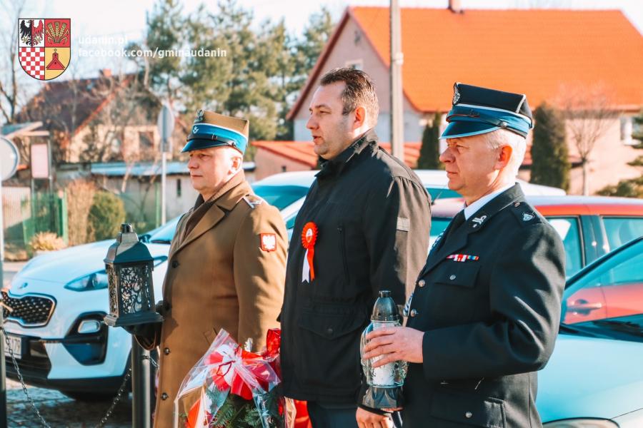 W celu upamiętnienia Narodowego Dnia Pamięci „Żołnierzy Wyklętych” wójt gminy Udanin Wojciech Płaziuk wraz z prezesem OSP KSRG Udanin Tadeuszem Brzozowskim oraz przedstawicielem 10 Wrocławskiego Pułku Dowodzenia mł. chor. Tomaszem Jurkiem złożyli wiązankę kwiatów oraz zapalili znicz pod pomnikiem pamięci „Obrońców Ojczyzny” w Udaninie. Pamięć żołnierzy uczczono minutą ciszy.