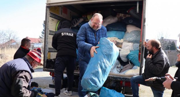 Artykuły zostały rozładowane do magazynów w Komornikach, Ciechowie i Krynicznie. - Kiedy dotarła do nas informacja, że nasza partnerska Gmina Środa Śląska przyjmuje uchodźców z Ukrainy, zaoferowaliśmy naszą pomoc – wyjaśnia Thomas Otto, burmistrz Saterlandu, partnerskiej Gminy z Niemiec. – Chętni mieszkańcy przynosili nam odzież i inne potrzebne produkty, wpłacali też pieniądze. Przeznaczyliśmy także kwotę z budżetu zarezerwowaną na jesienną imprezę w naszej Gminie, na zakup artykułów potrzebnych uchodźcom. Kilka godzin trwało pakowanie darów, przy którym pomagali też nasi mieszkańcy. Cieszymy się, że spotkaliśmy się z takim zaangażowaniem – przyznaje Thomas Otto.