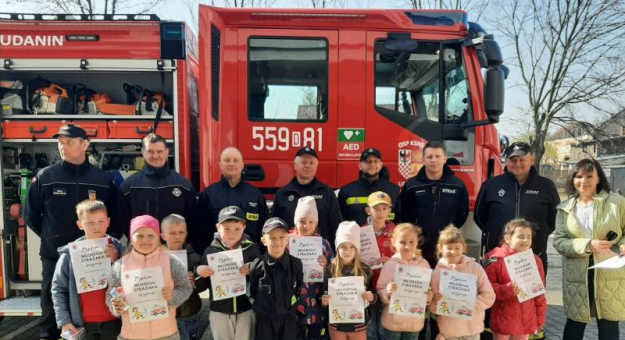 - Strażacy przypomnieli dzieciom, jak prawidłowo należy wezwać pomoc, dzwoniąc pod numer 112 oraz jakie dane należy podać przy zgłoszeniu. Rozmawialiśmy także jak bezpiecznie udzielić pierwszej pomocy osobie poszkodowanej, jakie niebezpieczeństwa niosą pożary, wypalania traw oraz jak temu zapobiec. Niebywałą atrakcją dla dzieci była możliwość lania wodą z węża i przebywanie w wozie strażackim. Dziękujemy dzieciom wraz z opiekunami za odwiedzenie naszej jednostki oraz dziękujemy za obdarowanie nas pięknymi laurkami - informują druhowie z Ochotniczej Straży Pożarnej w Udaninie.