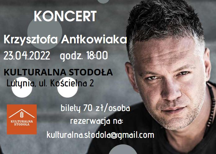 Sobotni koncert rozpocznie się o godzinie 18.00. Kulturalna Stodoła mieści się przy ul. Kościelnej 2 w Lutyni. Koszt biletu to 70 zł za osobę. Rezerwacji można dokonać mailowo pod adresem kulturalna.stodola@gmail.com.