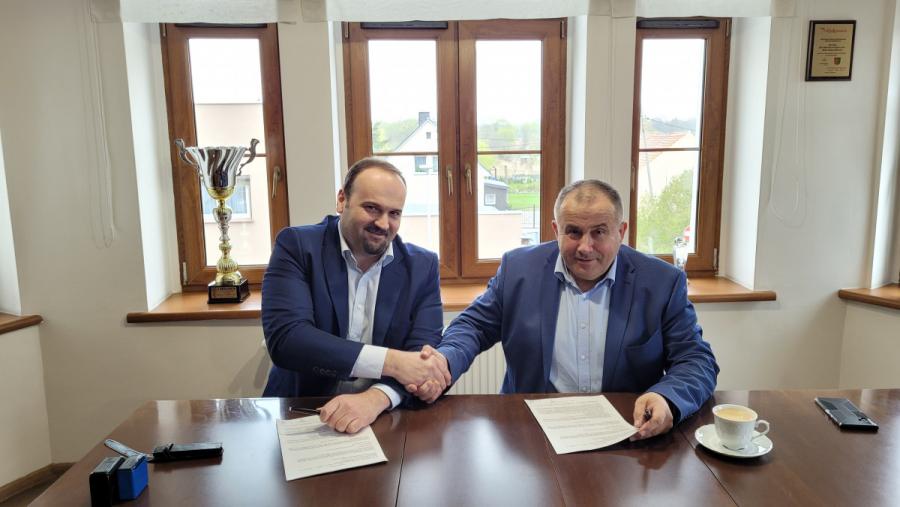 Firma BERGER BAU Polska Sp. z o.o. przebuduje ul. Familijną i Muzyczną w Źródłach. Umowę w tym zakresie wójt Jan Marian Grzegorczyn podpisał 22 kwietnia br.