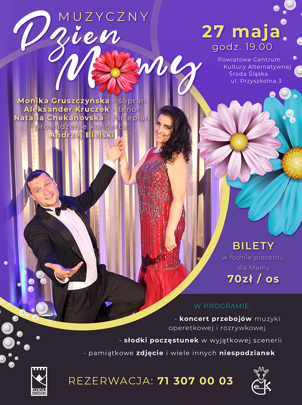 Wielkimi krokami zbliża się wyjątkowy dzień! W Powiatowym Centrum Kultury Alternatywnej w Środzie Śląskiej odbędzie się niepowtarzalny koncert z okazji Dnia Mamy.