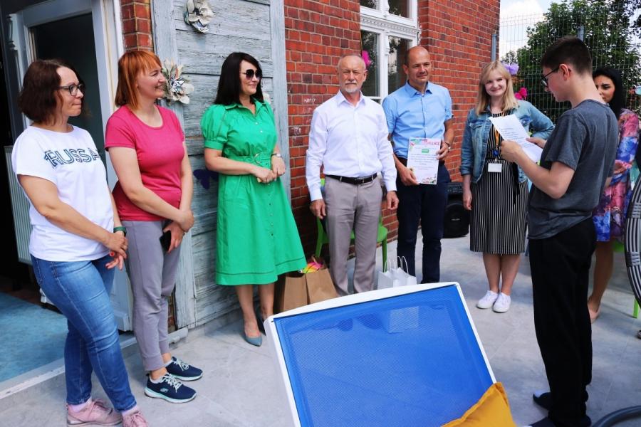 10 czerwca przedstawiciele powiatu w składzie starosta Krzysztof Szałankiewicz i skarbniczka Elżbieta Czarnota wzięli udział w oficjalnym odebraniu nowo wyremontowanego tarasu Placówki Opiekuńczo-Wychowawczej Typu Socjalizacyjnego.