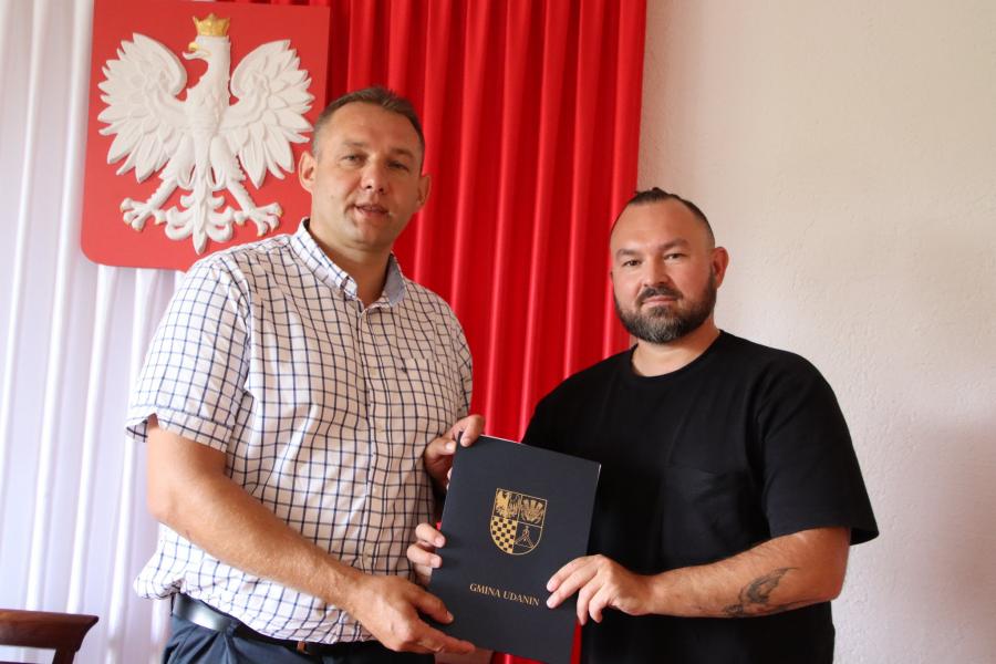 - W dniu dzisiejszym wraz z panią skarbnik podpisaliśmy umowy na budowę obiektów sportowo-rekreacyjnych w gminie Udanin. Są to kolejne inwestycje, które będą mogły być zrealizowane dzięki pozyskanej dotacji, ale też i przeprowadzonym pracom związanym z przeprowadzeniem niełatwej procedury przetargowej i projektowej. Na realizację inwestycji gmina Udanin otrzymała dofinansowanie w wysokości 4 500 000 zł z Rządowego Funduszu Polski Ład: Program Inwestycji Strategicznych. Dlatego bardzo serdecznie dziękuje za współpracę pracownikom urzędu, radnym i projektantom - mówi Wojciech Płaziuk, wójt gminy Udanin.