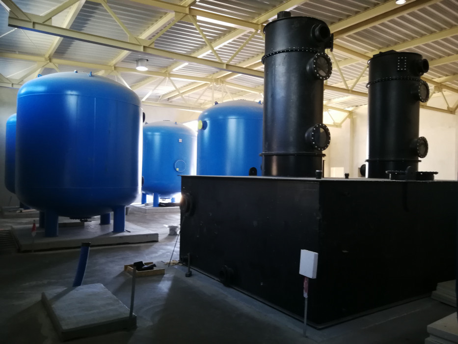 Każdy z nich ma pojemność 500 m3. W budynku SUW ukończono tynki wewnętrzne, trwa wykonywanie elewacji, obróbek blacharskich pokrycia dachu, zamontowana została stolarka okienna, w trakcie jest montaż stolarki drzwiowej. Zamontowane zostały filtry, przystąpiono do wykonywania technologii uzdatniania wody (orurowanie, pompy itp.).