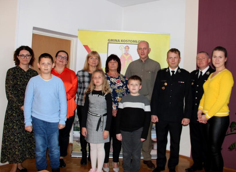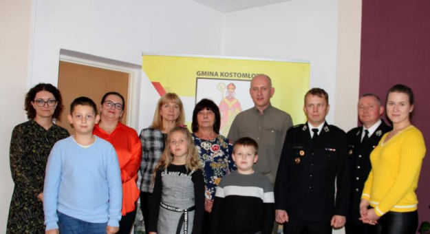 Podczas spotkania Janina Gawlik Wójt Gminy Kostomłoty, druhowie Bogusław Wilczak, Grzegorz Bartoszewski reprezentujący Ochotnicze Straże Pożarne z terenu powiatu średzkiego oraz Aleksandra Jackowiak i uczniowie Szkoły Podstawowej w Kostomłotach podziękowali Panu Nadleśniczemu za współpracę z Samorządem Gminy Kostomłoty.