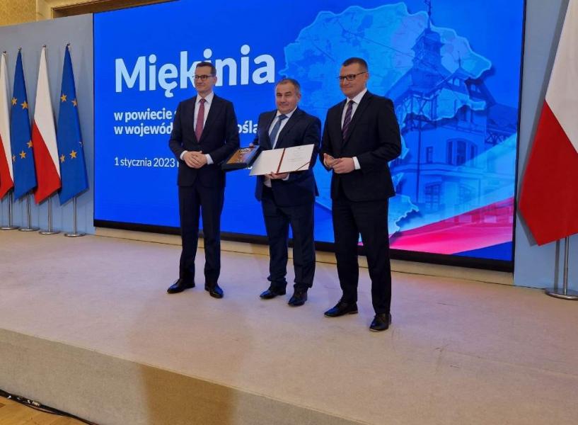 Wójt gminy Miękinia uczestniczył dziś w uroczystości nadania praw miejskich z udziałem premiera RP, podczas której odebrał akt nadania statusu miasta Miękini oraz symboliczne klucze do bram.