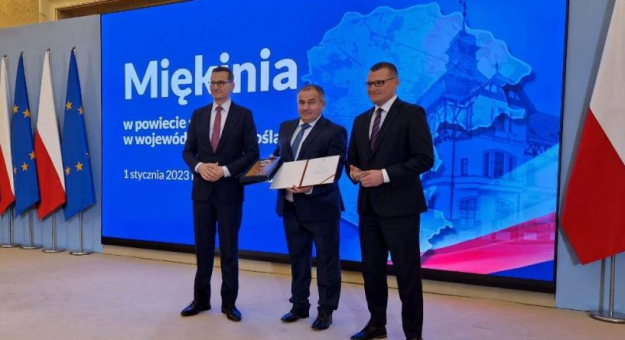 Od 1 stycznia 2023 roku na mapie Polski pojawi się 15 nowych miast. Wśród nich jest Miękinia! Podczas dzisiejszej (29 grudnia 2022 r.) uroczystości zorganizowanej w Warszawie wójt odebrał akt nadania praw miejskich z rąk premiera Mateusza Morawieckiego. Za kilka dni gmina Miękinia uzyska status gminy miejsko-wiejskiej, a sama Miękinia stanie się drugim miastem w powiecie średzkim.