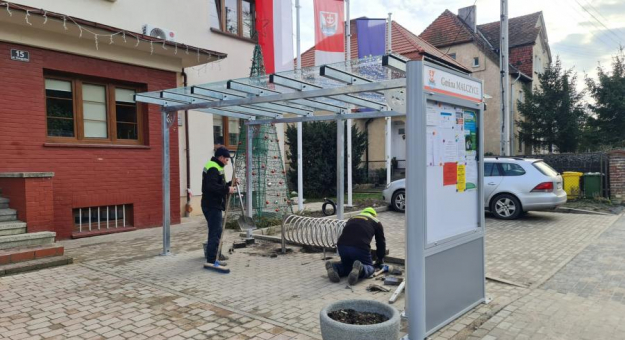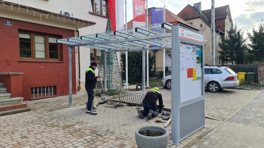 Pod Urzędem Gminy Malczyce montowana jest wiata rowerowa, która stanęła obok nowo wybudowanego parkingu.