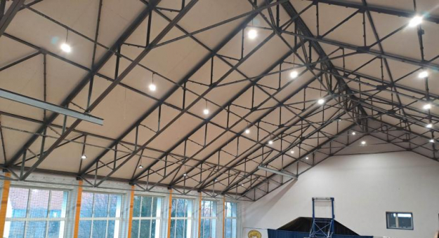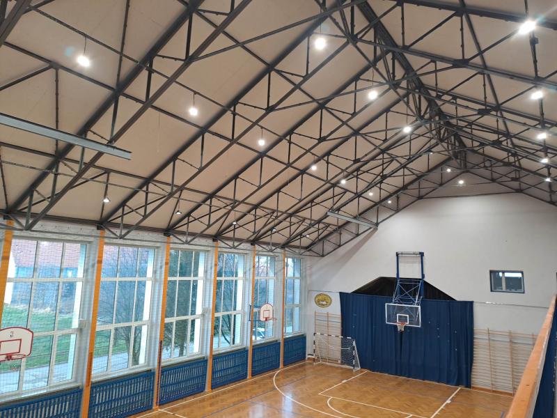 W ostatnich dniach grudnia 2022 r. w Zespole Szkolno - Przedszkolnym w Udaninie przeprowadzono prace remontowe polegające na wymianie oświetlenia w bloku sportowym.
