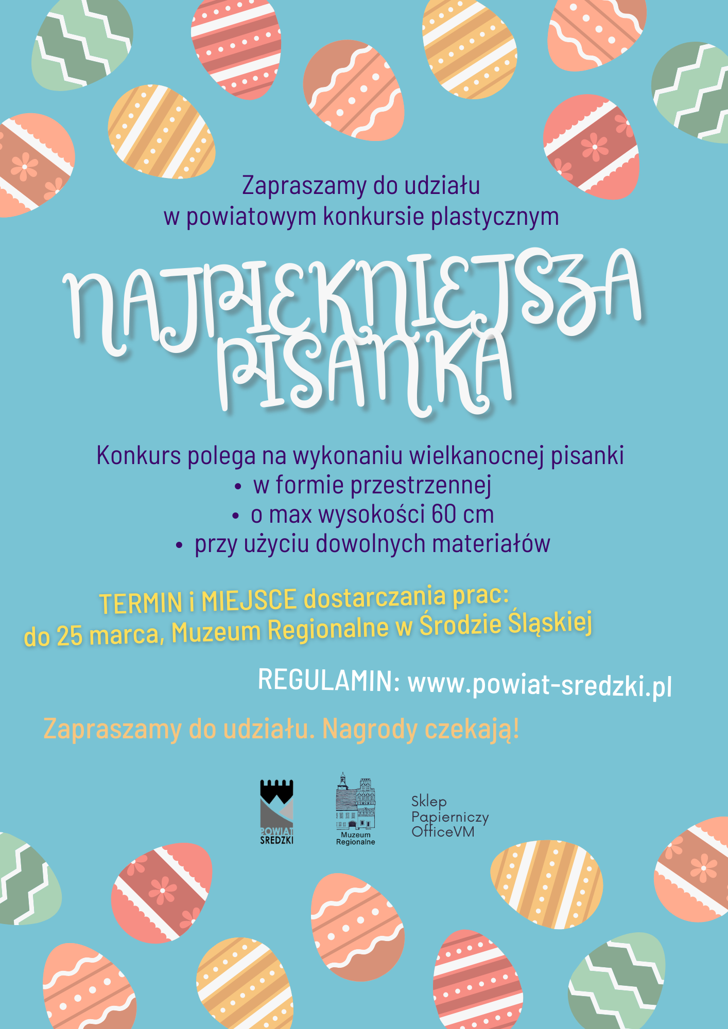 Po raz kolejny Powiat, Muzeum Regionalne i sklep OfficeVM organizują świąteczny konkurs plastyczny na “Najpiękniejszą pisankę”. Termin dostarczenia prac mija 25 marca.