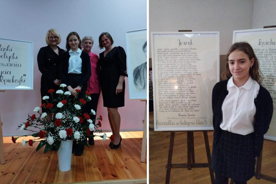 Uroczysta gala podsumowująca odbyła się 15 marca w Miejskim Ośrodku Kultury w Międzyborzu. Tam Hanna z rąk znakomitych gości odebrała cenne nie tylko nagrody rzeczowe, ale główną nagrodę, którą jest wycieczka edukacyjna do Warszawy wraz z opiekunem Lillą Staworowską, ufundowana przez Stowarzyszenie Odra-Niemen z Wrocławia oraz tomik poezji - zbiór wierszy inspirowanych życiem i nauką ks. Jerzego Popiełuszki wszystkich nagrodzonych w konkursie. Za to że konkurs został wpisany na kuratoryjną listę konkursów, które są premiowane dodatkowymi punktami rekrutacyjnymi do szkół średnich, to Hania otrzyma 2 punkty rekrutacyjne.