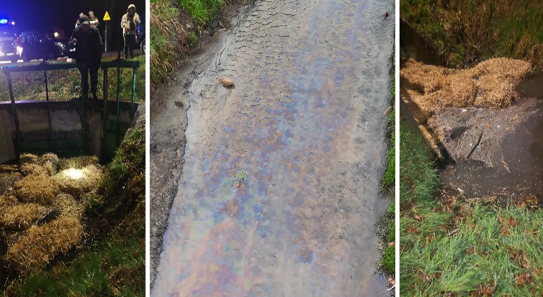 Wrocławska jednostka został powiadomiony przez Państwową Straż Pożarną w Środzie Śląskiej. Inspektorzy, którzy przybyli na miejsce zdarzenia potwierdzili zanieczyszczenie rowu na wysokości ul. Górnej.