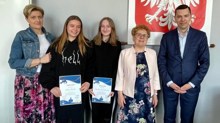Uczennice ze szkoły w Kostomłotach nagrodzone za konkurs wiedzy o Unii Europejskiej fot.: Gmina Kostomłoty
