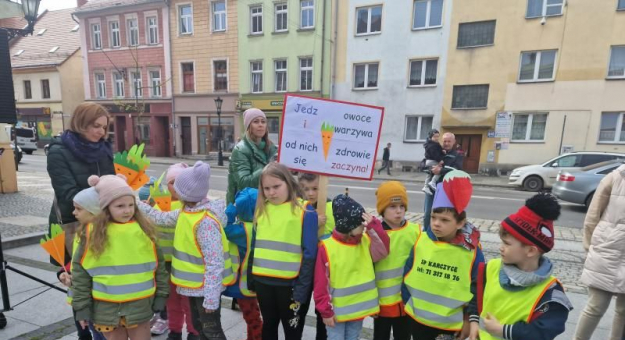 Najmłodsi poprzebierani w kolorowe stroje z dumą prezentowali własnoręcznie wykonane plakaty i banery z prozdrowotnymi hasłami, które imponowały kreatywnością “Dobry nastrój, dobre minki to zasługa witaminki”, “Jedz owoce i warzywa, bo w nich zdrowie się ukrywa”, “Żeby życie miało smaczek, raz jabłuszko, raz buraczek” - to tylko niektóre z nich.