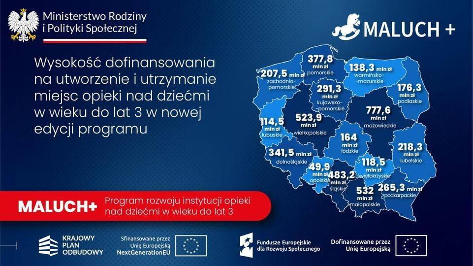 Do gminy Udanin trafi 573 433,38 zł na utworzenie 13 miejsc zorganizowanych na zasadach klubu malucha.