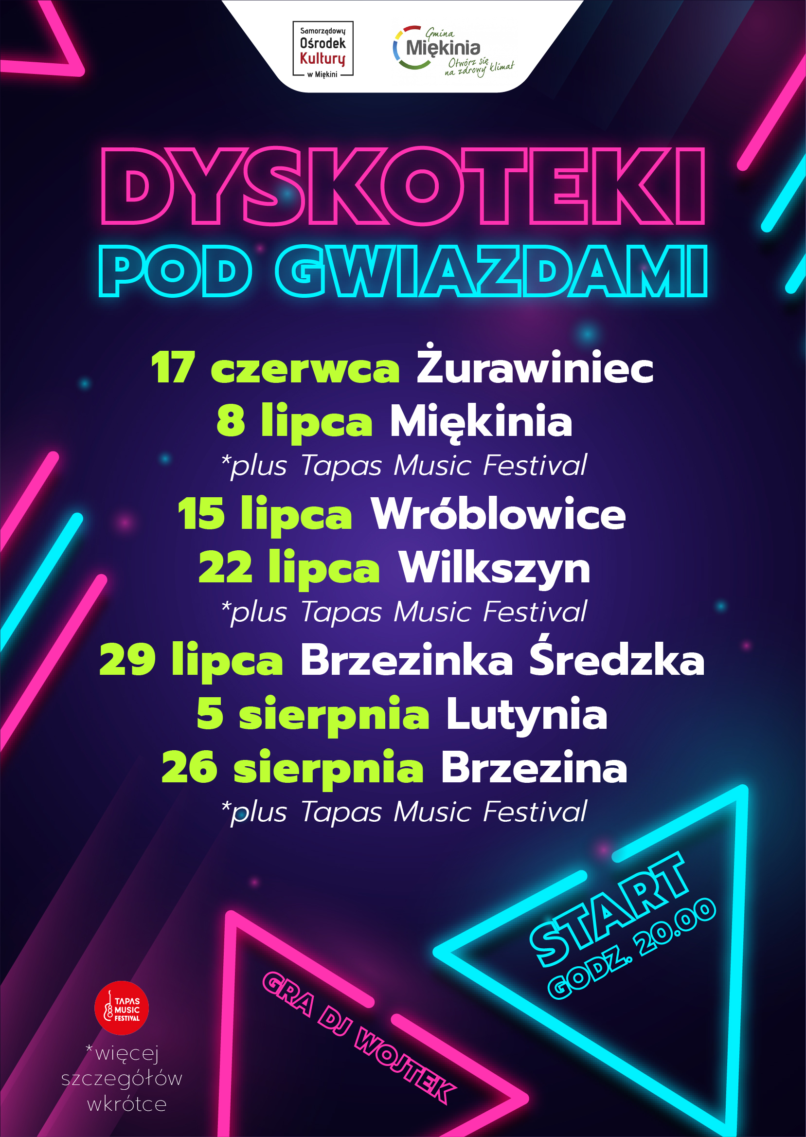 Pierwsza plenerowa dyskoteka już najbliższą sobotę w Żurawińcu. Organizatorem wydarzeń jest Samorządowy Ośrodek Kultury i Gmina Miękinia, którzy przedstawiają harmonogram wakacyjnych imprez.