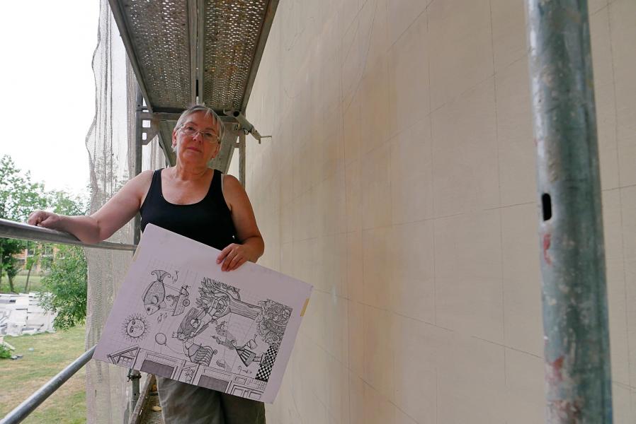 Wykonanie muralu powierzono nie komu innemu, jak autorce pierwszego dzieła, Małgorzacie Boguckiej. Pani Magda to znana lokalna artystka. Jej domeną jest malarstwo i ceramika. Od kilkunastu lat prowadzi Pracownię Artystyczna “Na piętrze”, a od kilku warsztaty plastyczne w Powiatowym Centrum Kultury Alternatywnej. Za swoją działalność oraz zaangażowanie w życie lokalnej społeczności została w 2021 r. wyróżniona tytułem “Zasłużony dla Powiatu Średzkiego”.