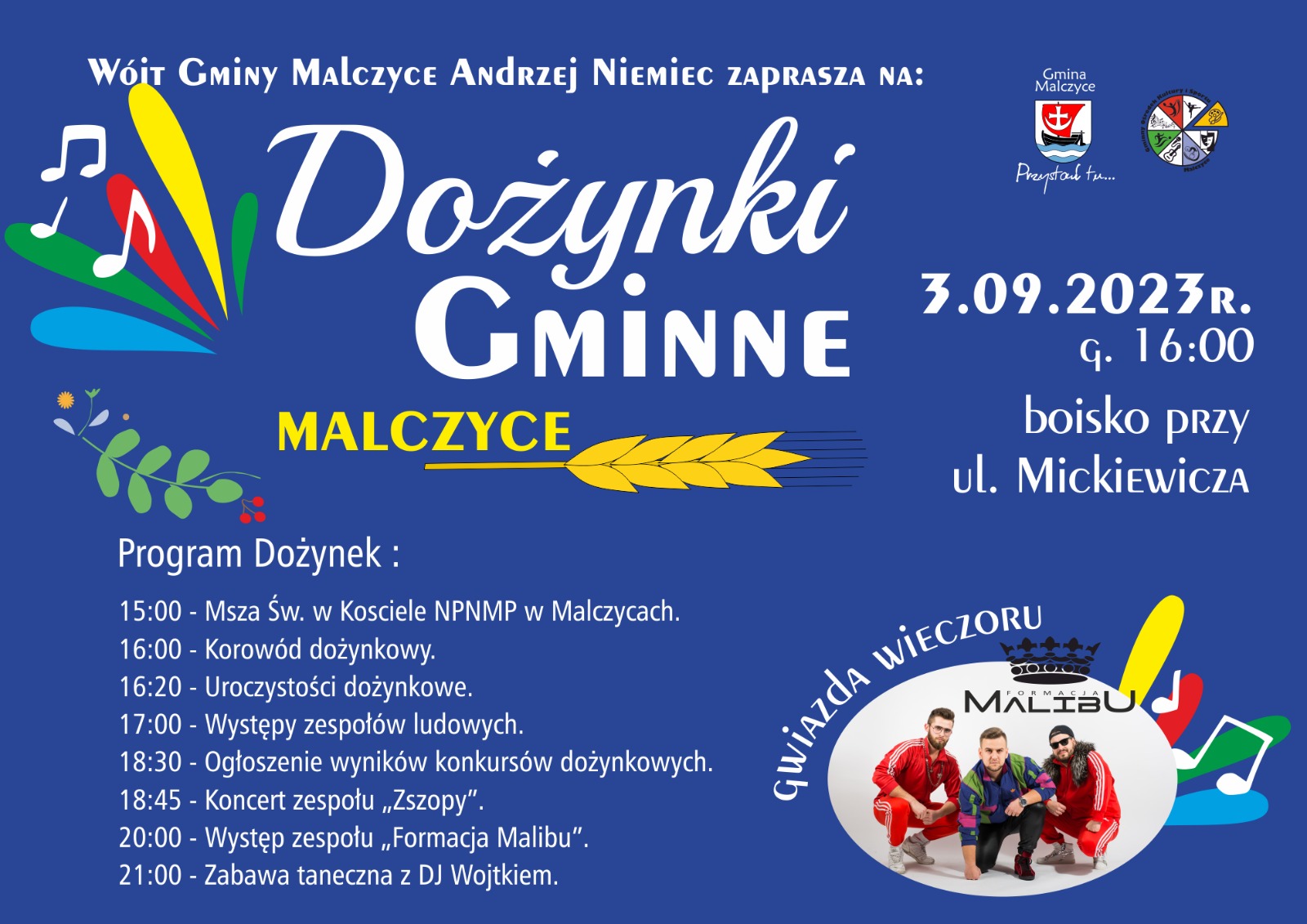 3 września w Malczycach odbędą się Dożynki Gminy Malczyce. Gwiazdą będzie zespół „Malibu”.