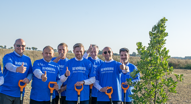 Kolejne spotkanie z przedstawicielami firmy Intel. Zasadzony dąb symbolem trwałości fot.: Echo Średzkie