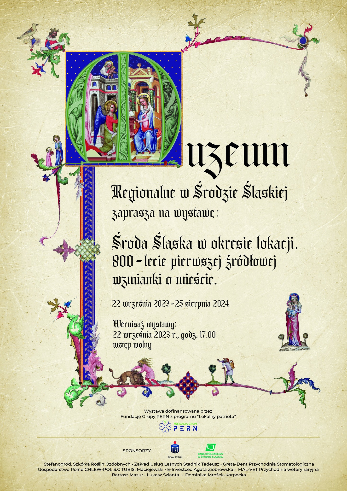 - Serdecznie zapraszamy 22 września 2023 r. (piątek) na godz. 17.00 na otwarcie naszej nowej wystawy "Środa Śląska w okresie lokacji. 800-lecie pierwszej źródłowej wzmianki o mieście". Otwarcie wystawy uświetnione będzie pokazem tańców średniowiecznych w wykonaniu uczniów Szkoły Podstawowej nr 3 w Środzie Śląskiej pod kierownictwem Pani Anny Tuligłowicz - zapraszają pracownicy średzkiego muzeum.