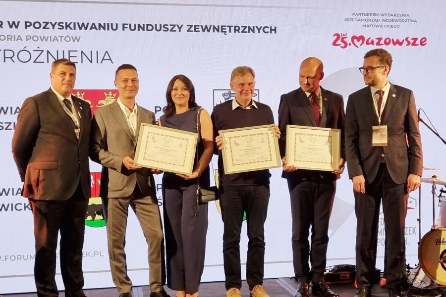 Certyfikat z rąk kapituły odebrali w Warszawie skarbniczka powiatu Elżbieta Czarnota oraz kierownik Wydziału Rozwoju, Funduszy Zewnętrznych i Promocji Powiatu Marcin Brzeziński.