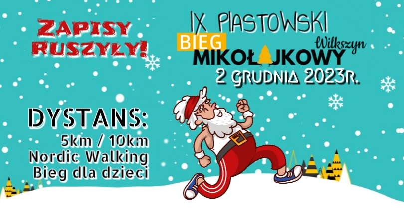 Zapraszamy na wydarzenie sportowe - Piastowski Bieg Mikołajkowy, który odbędzie się już 2 grudnia w Wilkszynie.