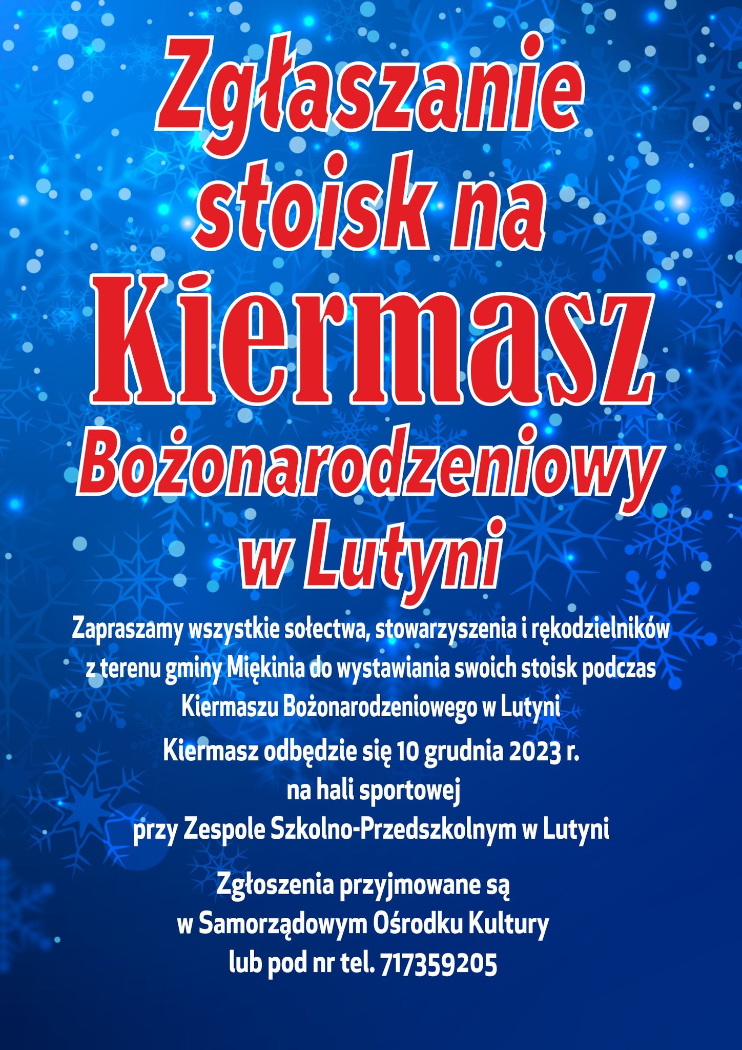 - 10 grudnia w Lutyni na hali sportowej przy Zespole Szkolno-Przedszkolnym w Lutyni, ul. Polna 1B