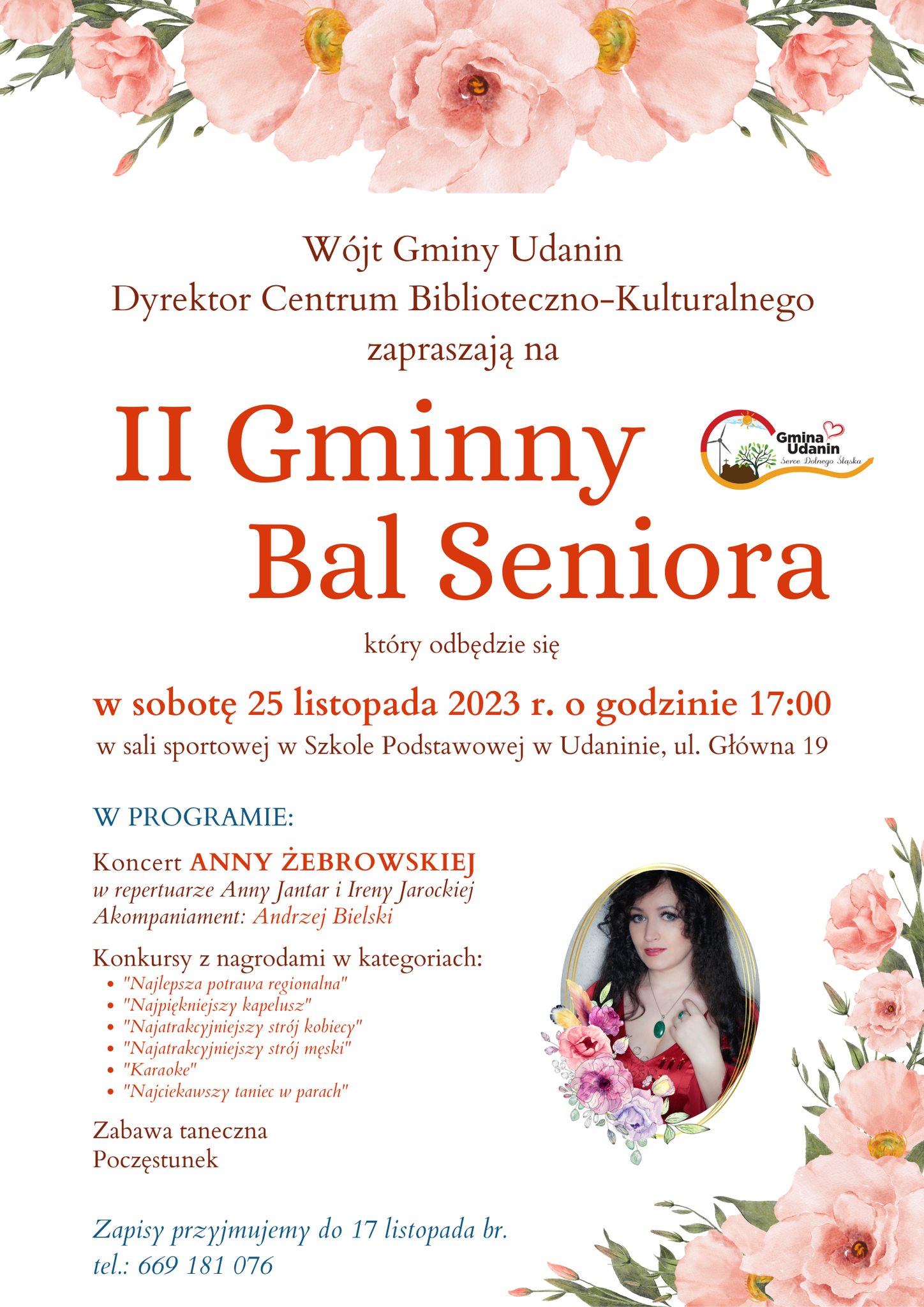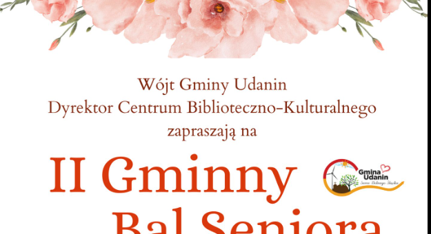 W imieniu organizatorów wydarzenia Wójta Gminy Udanin Wojciecha Płaziuka i Dyrektora Centrum Biblioteczno-Kulturalnego w Udaninie mamy przyjemność zaprosić Państwa na II Gminny Bal Seniora.