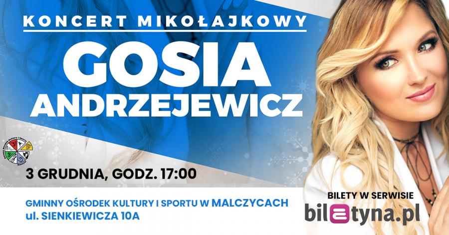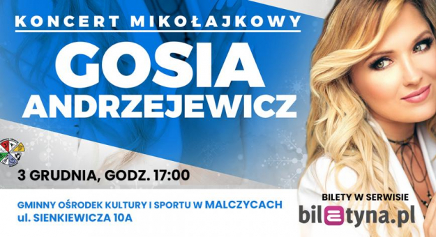W niedzielę 3 grudnia w Gminnym Ośrodku Kultury i Sportu w Malczycach odbędzie się Mikołajkowy Koncert Gosi Andrzejewicz.