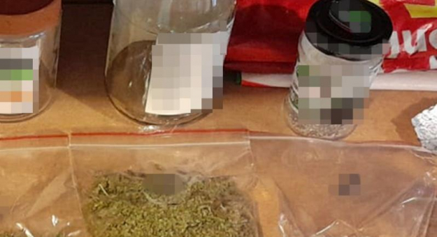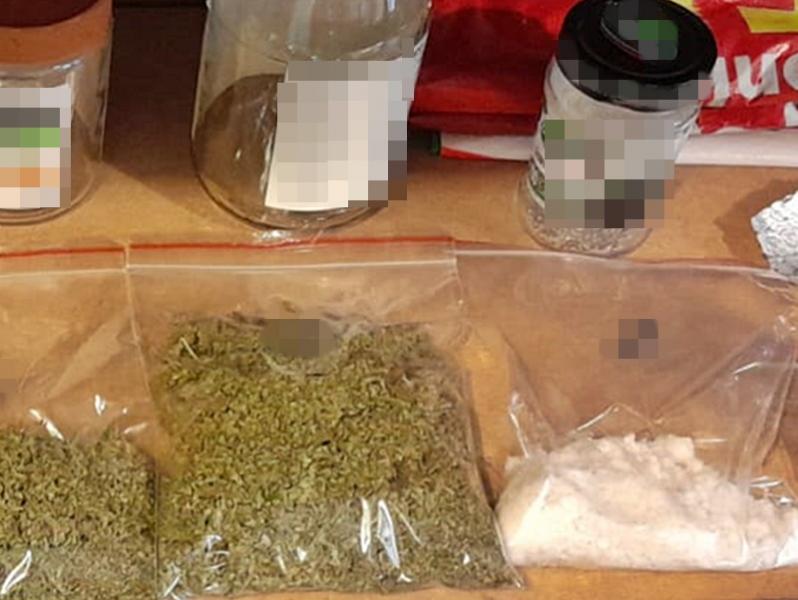33-latek przechowywał je w słoikach i w reklamówkach na zakupy. Była to głównie marihuana, amfetamina oraz metamfetamina w ilości blisko 1,1 kg.