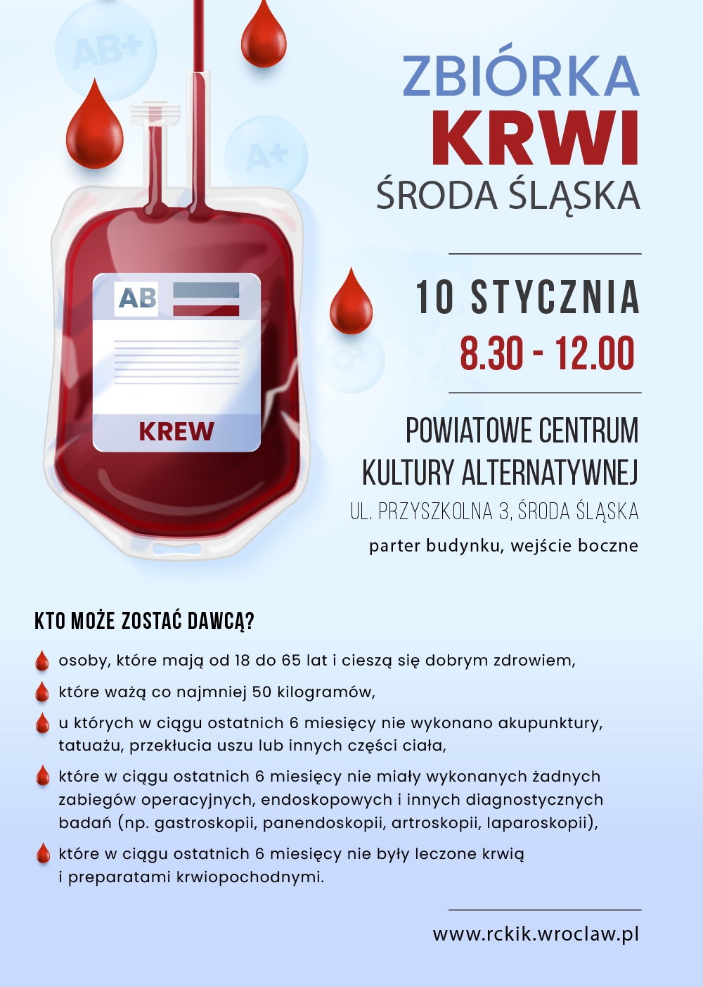 strona główna wiadomości Zbiórka krwi w Środzie Śląskiej już jutro