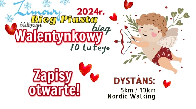 Już 10 lutego w Wilkszynie kolejne zawody biegowe. Tym razem tematem przewodnim będą WALENTYNKI. Najciekawsze będzie to, że zakochani biegnąc będą ze sobą połączeni podczas wykonywania zadania. Ciekawi? Zapisujcie się.