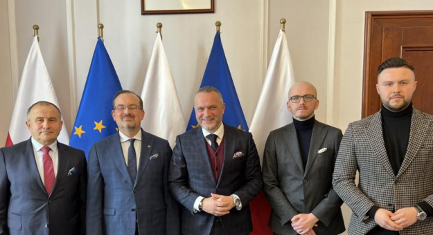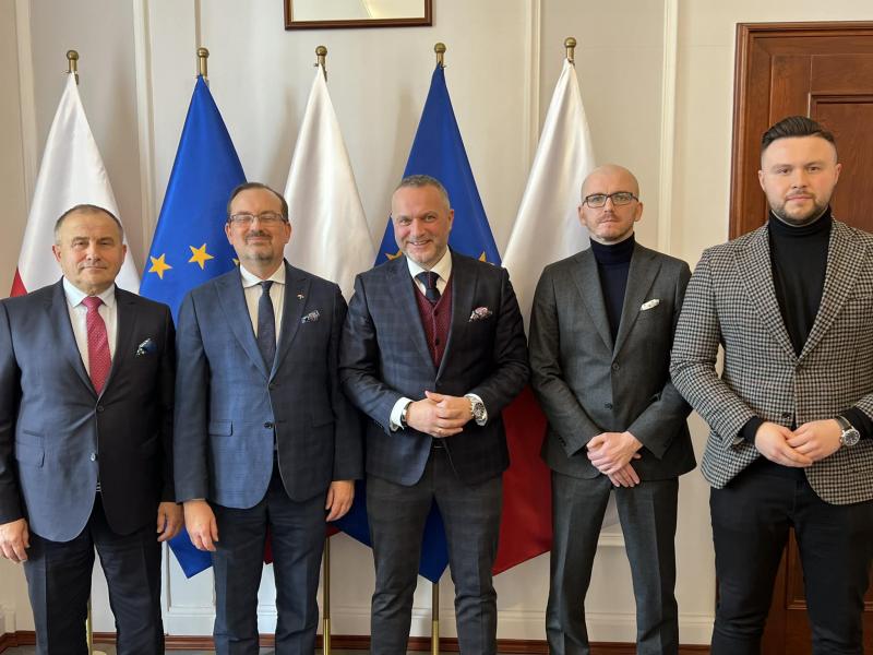 Wicestarosta Powiatu Średzkiego Sebastian Burdzy i burmistrz Jan Marian Grzegorczyn odbyli pierwszą wizytę u nowego wojewody dolnośląskiego Macieja Awiżenia.