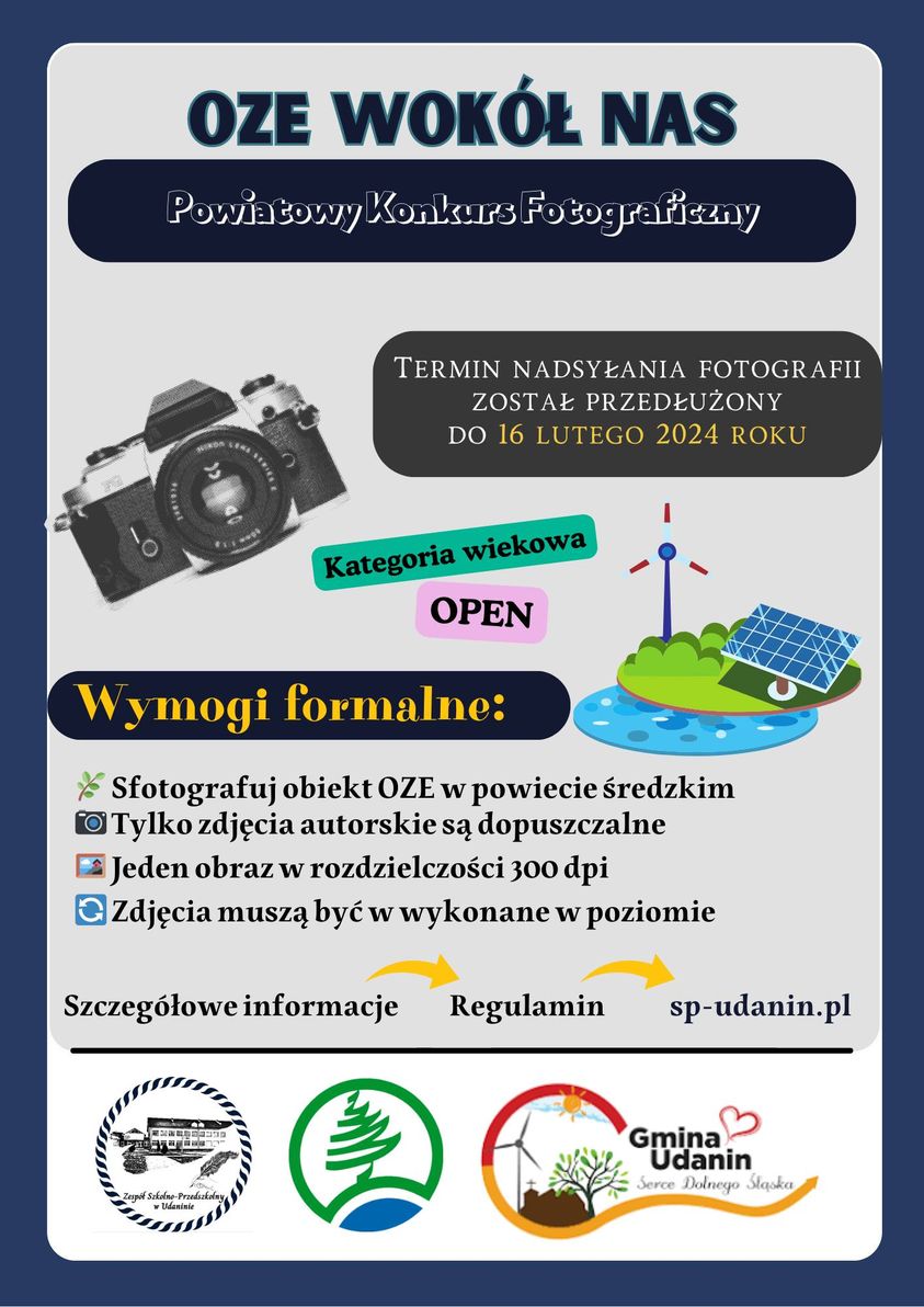 W odpowiedzi na liczne prośby o przedłużenie terminu zgłaszania zdjęć, serdecznie zapraszamy do udziału w Powiatowym Konkursie Fotograficznym pt. „Odnawialne Źródła Energii wokół nas”, organizowanym przez naszą szkołę!