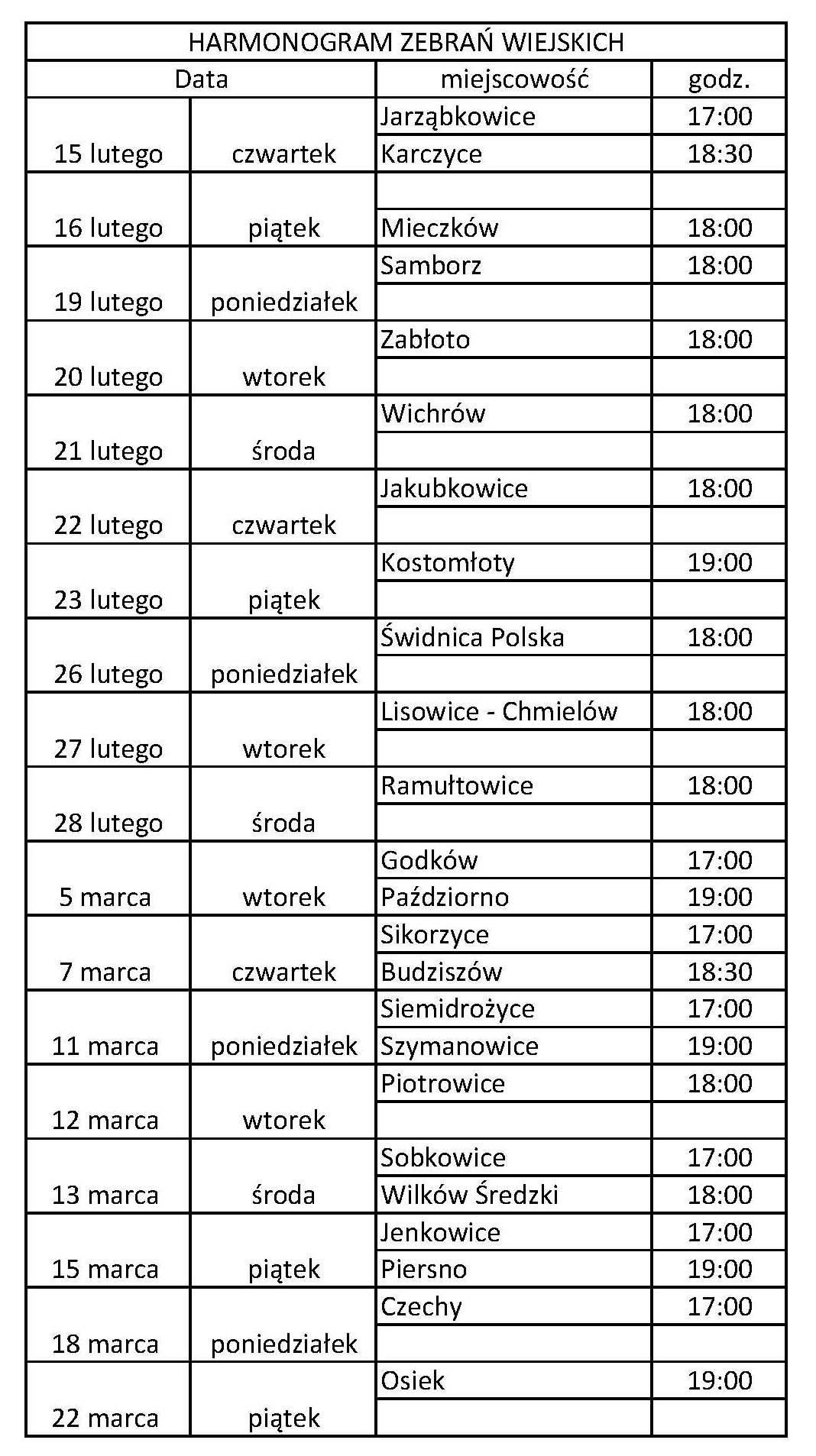 - Wójt Gminy Kostomłoty rozpoczyna zebrania wiejskie, na które zaprasza Mieszkańców poszczególnych miejscowości zgodnie z załączonym poniżej harmonogramem - informują urzędnicy Gminy Kostomłoty.