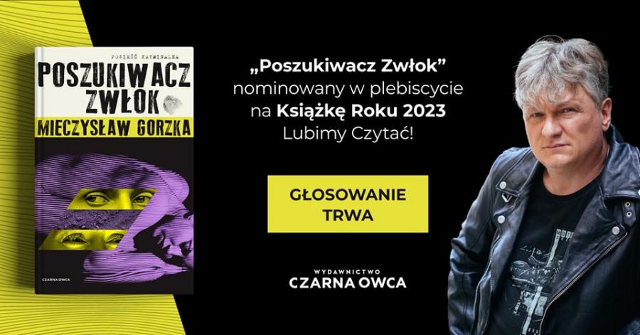 Książka Mieczysława Gorzki "Poszukiwacz zwłok", będąca pierwszym tomem nowej serii "Wilk i Lesiecki", bierze udział w plebiscycie na Książkę Roku 2023 portalu lubimyczytac.pl.